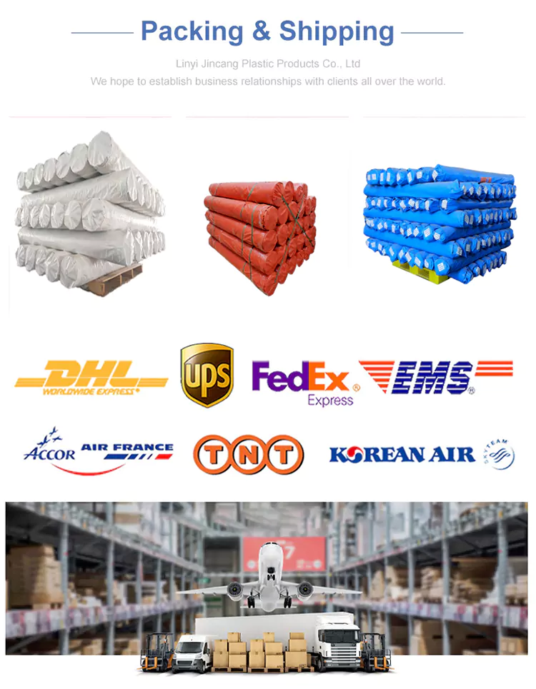 Jincang est l'un des fabricants professionnels de rouleaux de bâche PE en Chine, le rouleau de bâche PE en bande de 90 GSM est emballé par rouleau. La largeur est généralement de 1,83 m, 2 m, 4 m, 5 m, 6 m. La longueur est généralement de 63 m, 91, 100 m, 200 m, etc. Il est largement utilisé pour la protection extérieure, couvrant les marchandises, les chantiers de construction, à des fins agricoles et les abris temporaires.