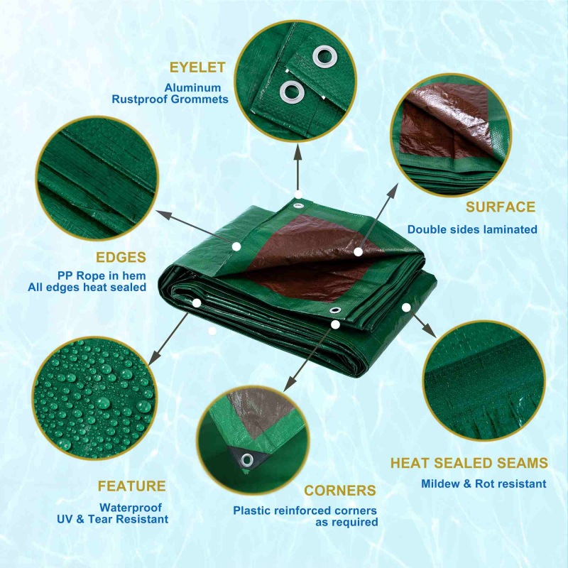 Bâche PE vert marron 8'x10' 110GSM pour la protection de la couverture