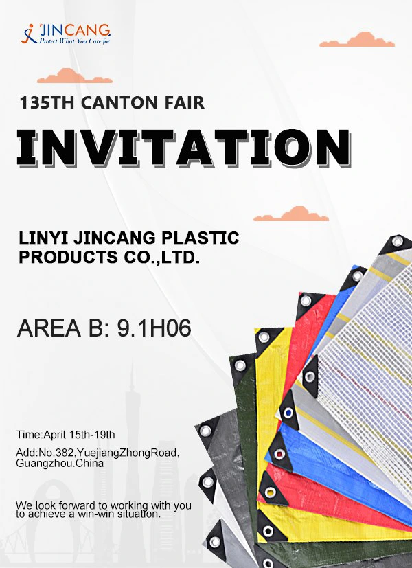 En tant que fabricant leader de Linyi JincCang Plastic Products Co Ltd, nous assisterons à la 135th Canton Fair du 15 au 19 avril à Guznghou, en Chine.Got pour savoir que vous êtes dans le secteur de PE Tarpaulin, nous vous invitons cordialement à visiter notre Booth H06,9.1.1.